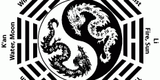 | Imagen de los 8 trigramas del I-ching y en el centro el símbolo Taiji, compuesto por Yin y Yang |